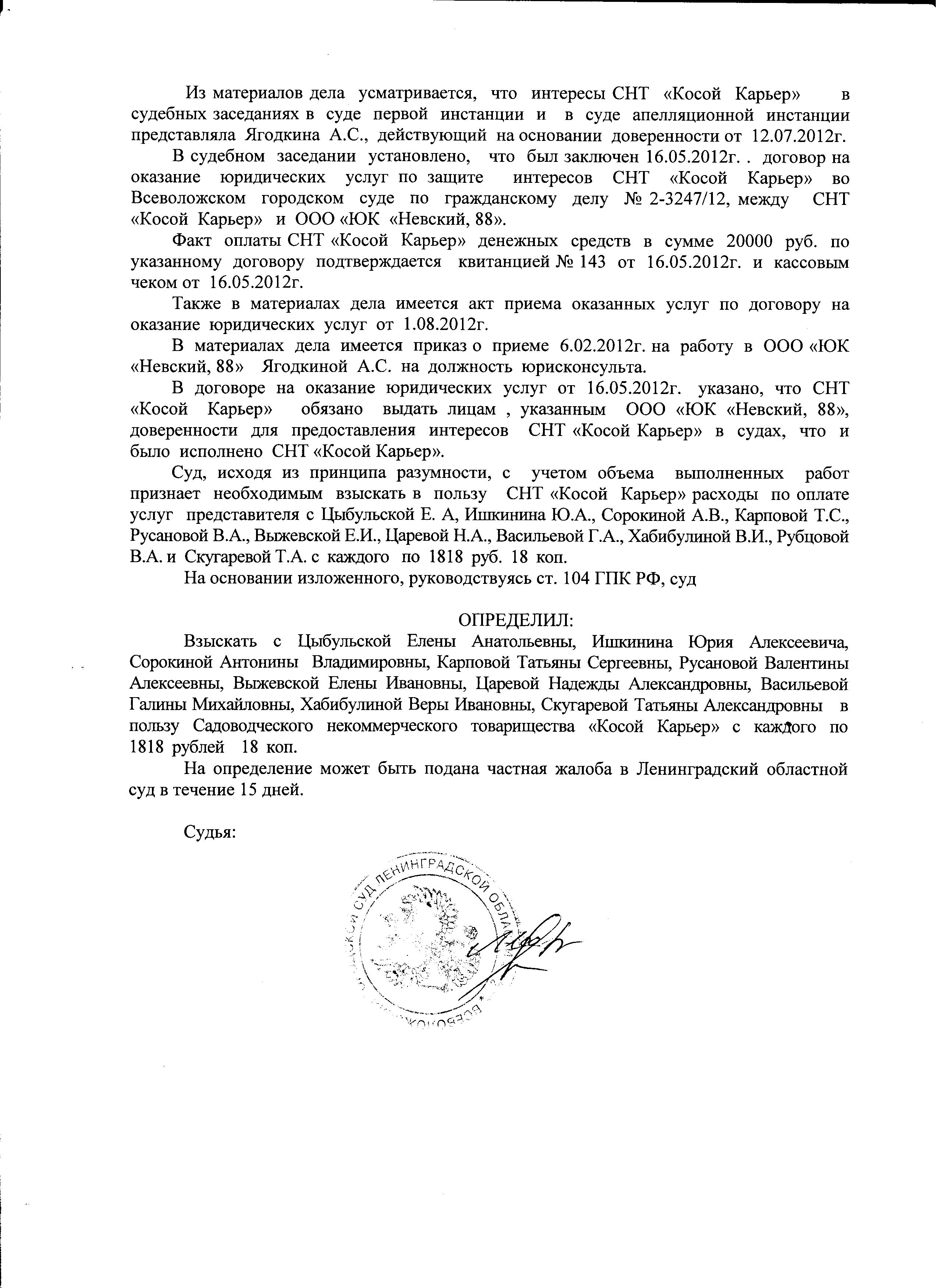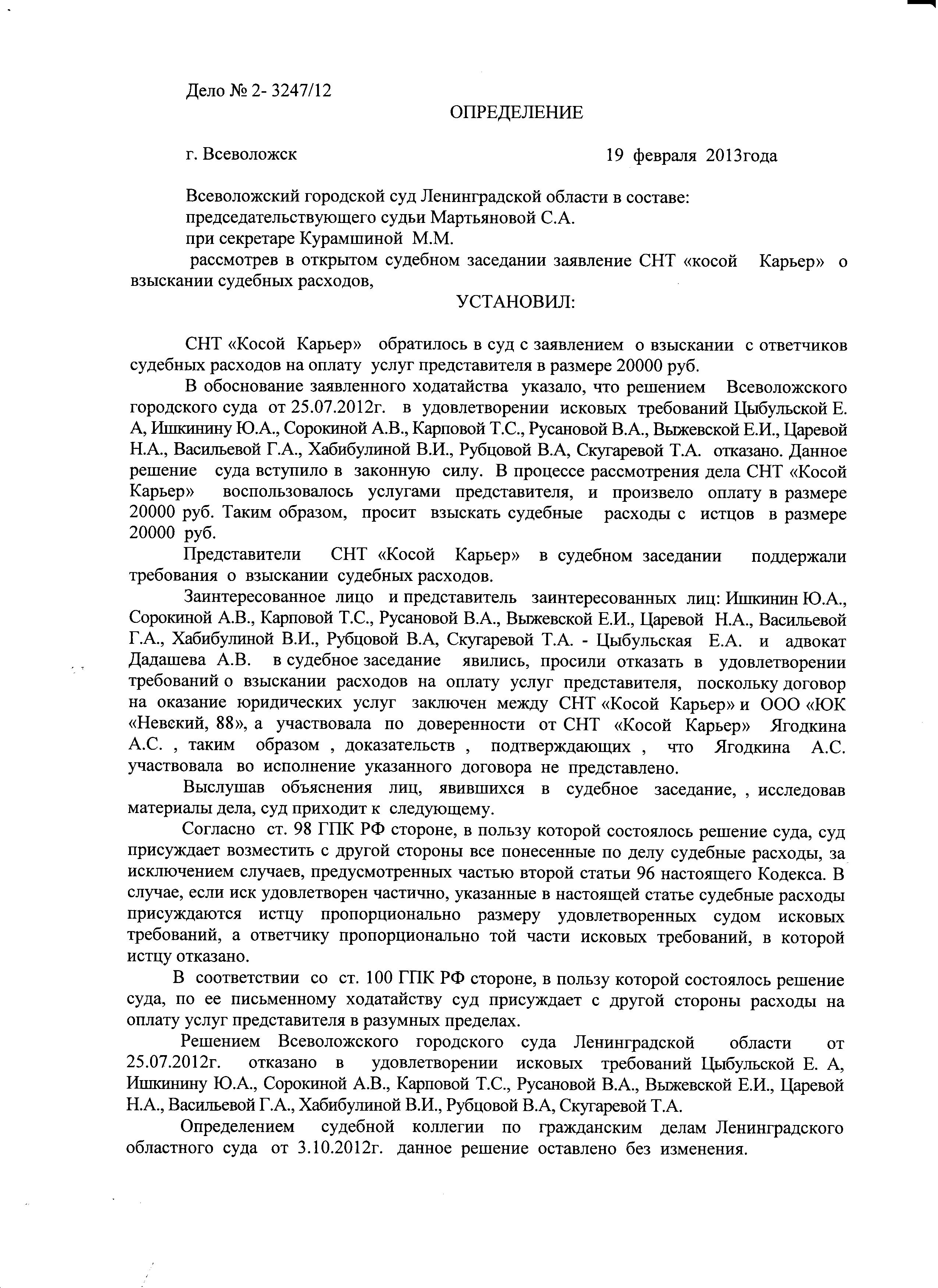 Взыскание судебных издержек с Цыбульской Е.А. (Сак Е.А.)